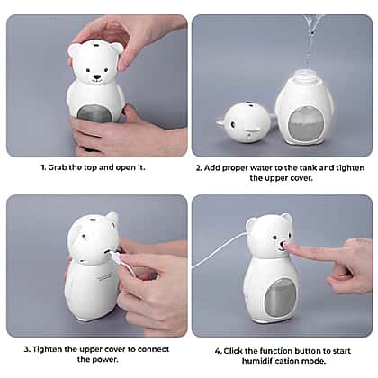 - POWERED BY: The bear design humidifier is accompanied with a USB cable that once attached at the back of the head of the bear will put the appliance into work