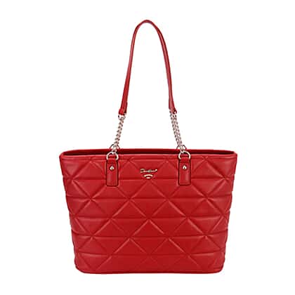 DAVID JONES Quilted Pattern Tote Bag with Handle Drop - Red