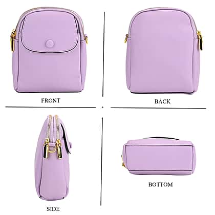 Add a bold pop of colour to your accessory collection with this eye-catching purple crossbody bag. Made from premium leatherette with a soft polyester interior, it’s perfect for storing daily must-haves while staying compact. The bag features two exterior zipped sections and a slip pocket, plus internal compartments for added convenience. The 120cm strap adjusts for comfort and detaches easily if you’d prefer to carry it by hand. With a secure metallic zipper and stylish hardware, this bag offers both flair and practicality for everyday adventures.