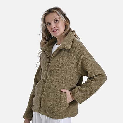 Embrace warmth and elegance with the La Marey Ladies Plush Jacket in green. Crafted from 100% polyester, this plush jacket offers exceptional softness and a cosy feel, perfect for cooler days. The high-neck collar and full sleeves provide enhanced coverage and comfort, while the zip closure ensures a snug and secure fit. Featuring two practical pockets, this stylish design seamlessly blends functionality with fashion. The rich green hue adds a timeless charm, making it an ideal choice for casual outings or relaxed evenings. Durable and easy to maintain, this jacket is a versatile addition to your wardrobe.