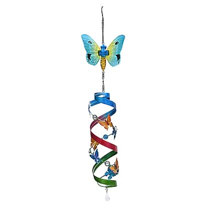 Green, Yellow and Multi Butterfly Spiral Wind Chime (Size 15x15x65 cm)