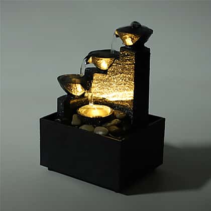 4 Layer Mini Water Fountain with Pebbles - Black - Portable with LED Lights - Powered on 2 AA Batteries (Not Included)
