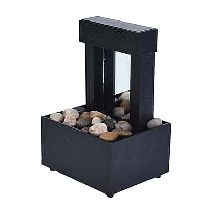 Mini Waterfall and Pebble Stone Fountain with LED Lights - Black