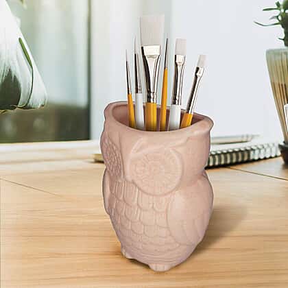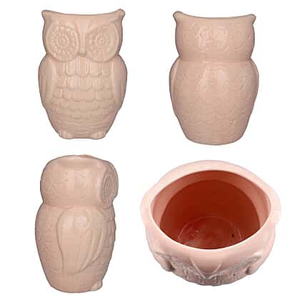 Owl Design Ceramic Multipurpose Holder (Size 19x9cm) - Light Pink