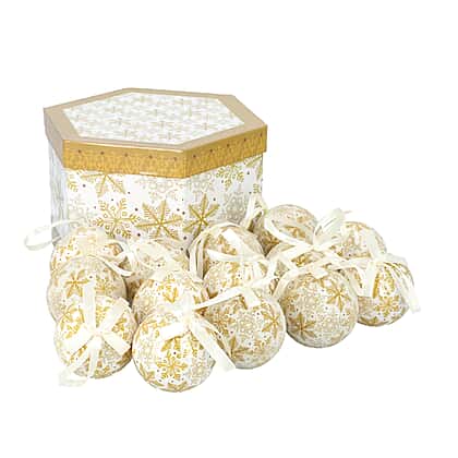 Set of 14 Christmas Decoration Snowflake Pattern Balls with Ribbon in Gift Box