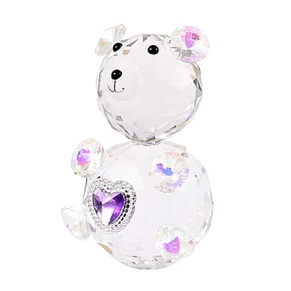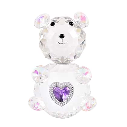Decorative AB Crystal Glass Bear with Purple Heart (11x7x6.5cm)
