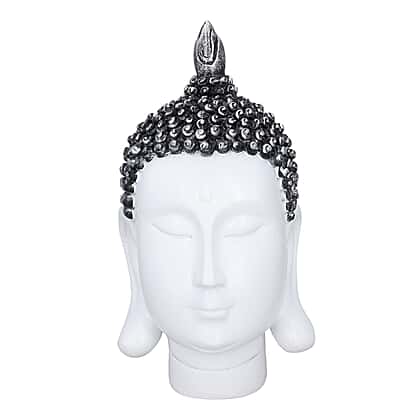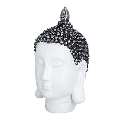 Buddha head decoration - white with silver Size:L10.5*W10*H20cm Color: white + silver + black Weight: 370 g Material: resin