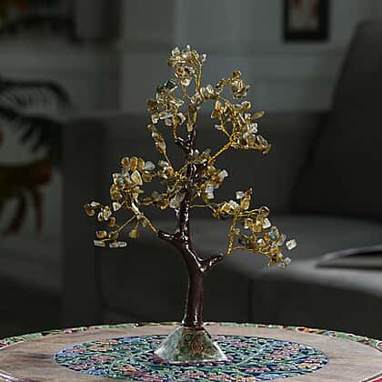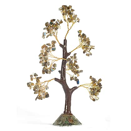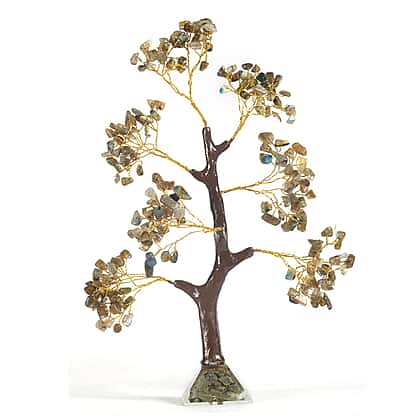 Decorative Handmade Lebrodite Gemstone Tree with Wooden Base (Size 23x5.5cm) - Multi