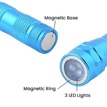 Set of 2 - 360 Degree Flexible Head 3 LED Magnetic Flashlight (Size 17x2.2 Cm) (4XLR44 Battery Included) - Cyan