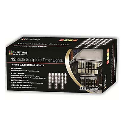 Indoor/Outdoor 12 LED Icicle Battery Operated Timer Lights - White (3C Battery not Included) 1.65m plus