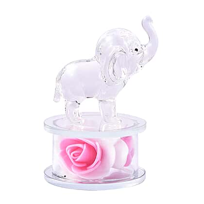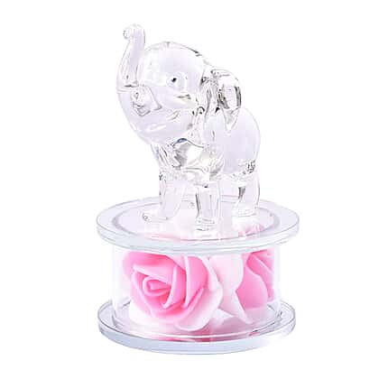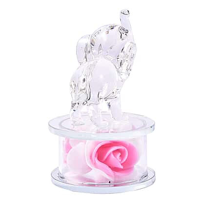 Decorative White Crystal Glass Elephant on Pink Flower Round Stand (12x8x10cm)