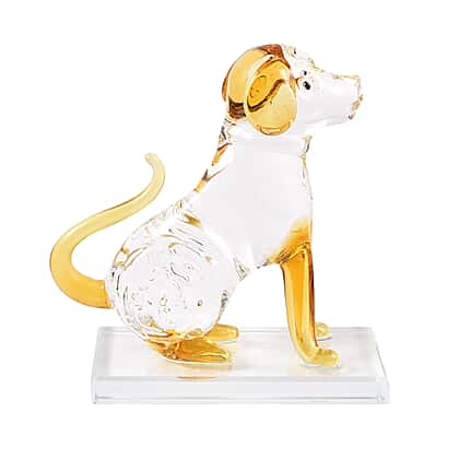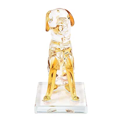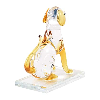 Decorative Yellow Crystal Glass Dog on Square Stand (12x6x15cm)