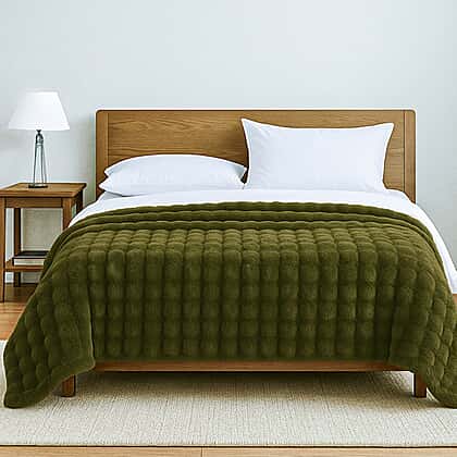 Deluxe Range- 700GSM Super Soft Rabbit Faux Fur Double Layer Blanket (Size 200x150) - Sage