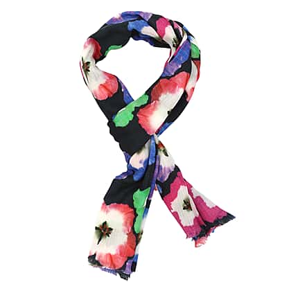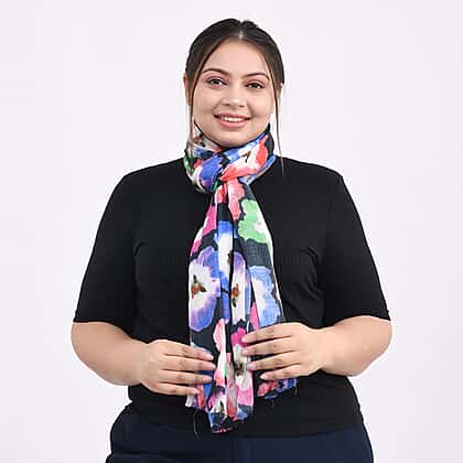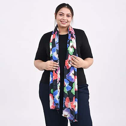 This beautiful cashmere floral scarf by La Marey will fashionably style your outfit. Made from handpicked wool from Kashmir, this scarf is digitally printed with a bold floral design which ensures its long-lasting appearance. The warmth and comfort of cashmere wool make it an ideal addition to your outfits for cold, windy days. The black and multi-colour will give you a dash of matching style with each company.
