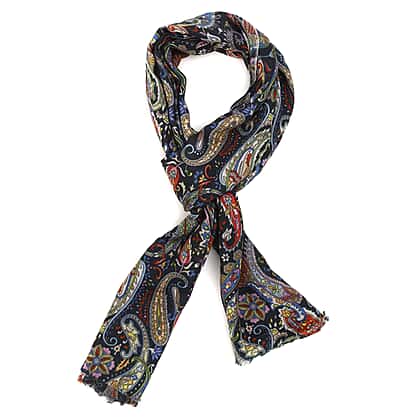 This beautiful cashmere paisley scarf by La Marey will fashionably style your outfit. Made from handpicked wool from Kashmir, this scarf is digitally printed with a paisley design, ensuring its long-lasting appearance. The warmth and comfort of cashmere wool make it an ideal addition to your outfits for cold, windy days. The multi-colour of this scarf will give you a dash of matching style with each company.