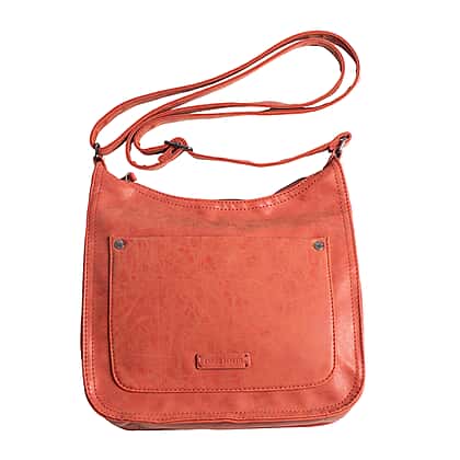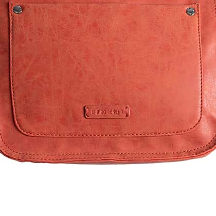 Designer Closeout - Enrico Benetti Leatherette Crossbody Bag with Shoulder Strap - Rust