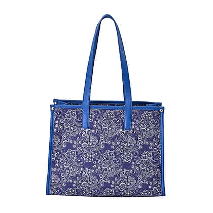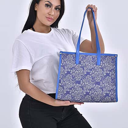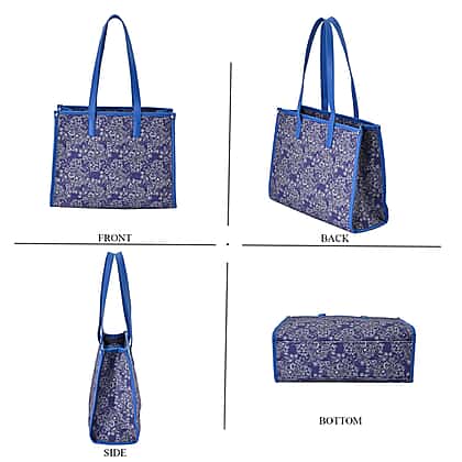 Designer Closeout- Fully Lined Jacquard Canvas Tote Bag with Zipper Closure and Handles - Navy