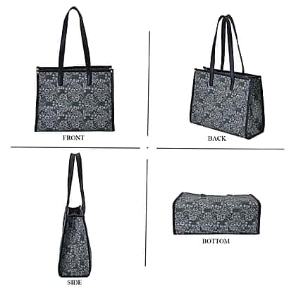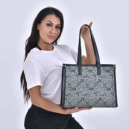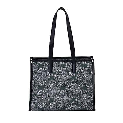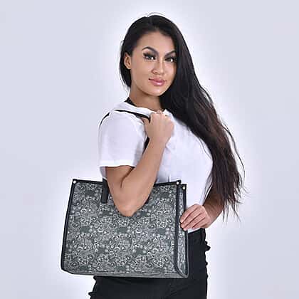 Designer Closeout- Fully Lined Jacquard Canvas Tote Bag with Zipper Closure and Handles - Olive
