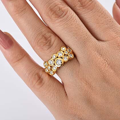 Designer Inpsired - Luxuriant Lab Grown Diamond (SI-GH) Bubble Ring in 18K Vermeil Yellow Gold Sterling Silver 1.00 Ct.