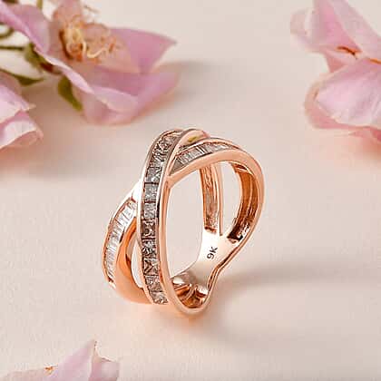 Designer Inspired- -9K Rose Gold Natural Champagne & White Diamond Crossover Ring 1.00 Ct.