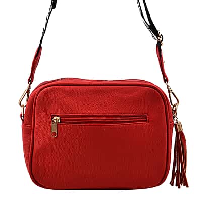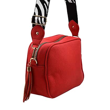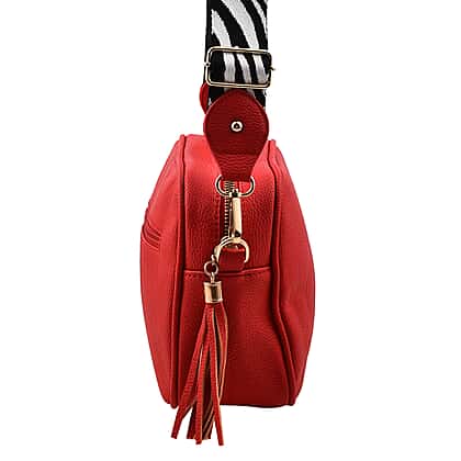 Designer Inspired - Crossbody Handbag with Zebra Pattern Shoulder Strap - Red