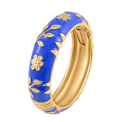 Designer Inspired - Enamelled Floral Blue Bangle (Size - 7.5)