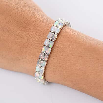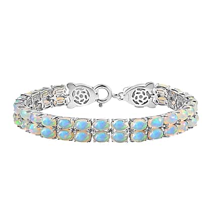 Designer Inspired - Ethiopian Opal & Brown Zircon Cluster Double Panther Bracelet (Size 7.5) in Rhodium Overlay Sterling Silver 14.75 Ct, Silver Wt. 16.90 Gms.