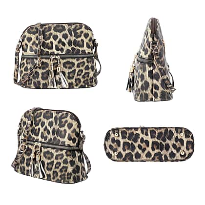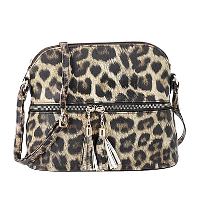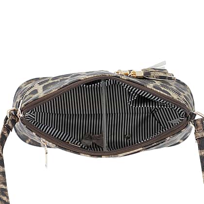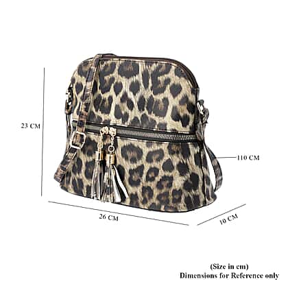 Designer Inspired - Leopard Print Crossbody Bag with Tassel Zipper (Size 26x10x23cm) - Brown