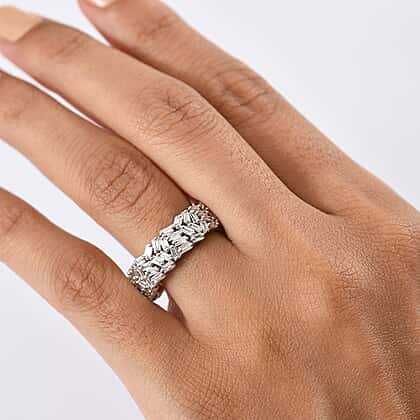 LUXURIANT 2 Ct. Lab Grown Diamond Firecracker Ring in Rhodium Overlay Sterling Silver (SI-GH)