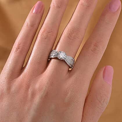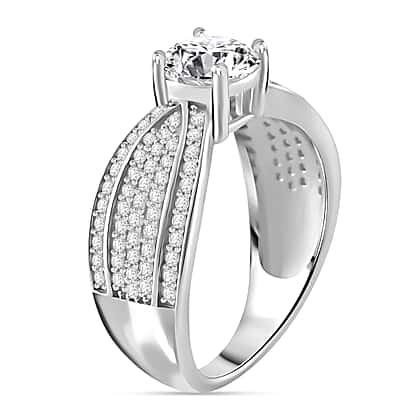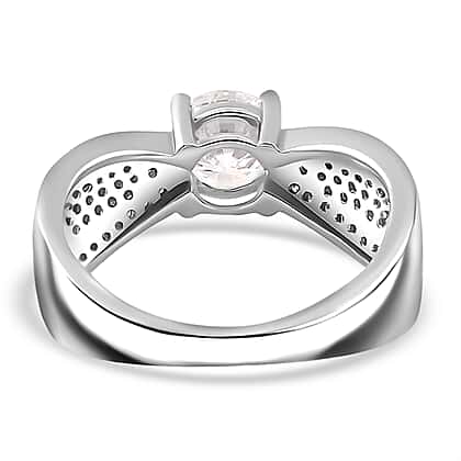 Designer Inspired - Moissanite Ring in Platinum Overlay Sterling Silver