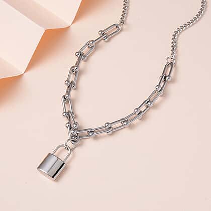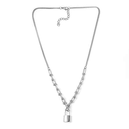 Designer Inspired - Padlock Necklace (Size 20-2 inch Ext.) in Silver Tone