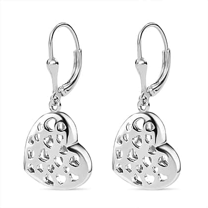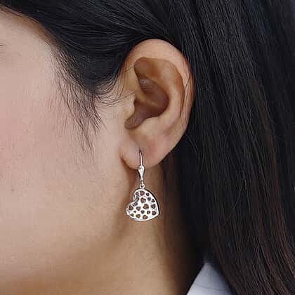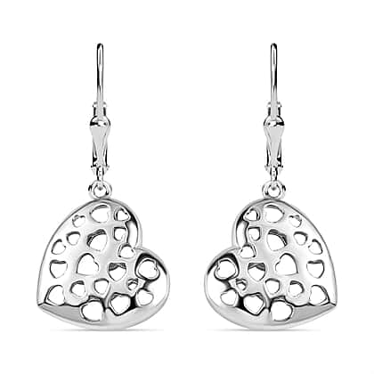 Designer Inspired - Platinum Overlay Sterling Silver Heart Earrings