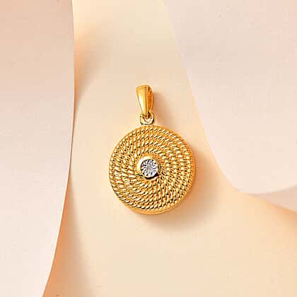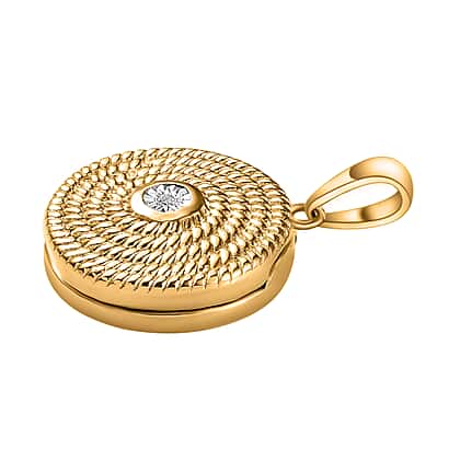 Designer Inspired - White Diamond Locket Pendant in 18K Vermeil YG Plated Sterling Silver