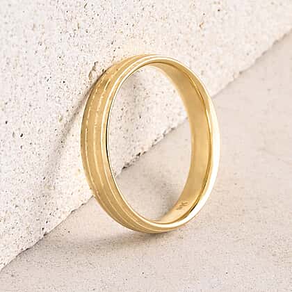 Discover a fusion of understated luxury and modern design with this designer inspired 9K Yellow Gold band ring. Crafted from rich 9K yellow gold, the band features subtle layered ridges that create depth and visual interest while maintaining a clean, streamlined look. The smooth, polished surface enhances the warm golden tone, reflecting light with a soft, stunning glow. Thoughtfully designed for comfort, the balanced structure ensures easy everyday wear. Whether chosen as a meaningful symbol, a wedding band, or a stacking essential, this ring delivers quiet confidence and timeless appeal with a contemporary edge.