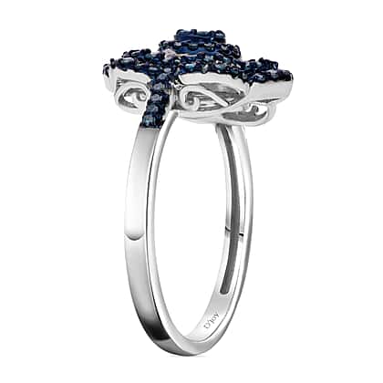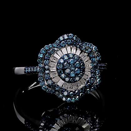 Blue Diamond and White Diamond Ring in Platinum Overlay Sterling Silver