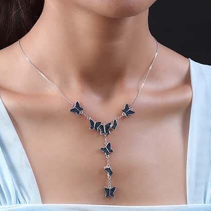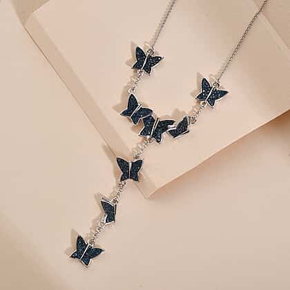 Designer Inspired- Blue Diamond Butterfly Lariat Necklace (Size -18-2 Inch Ext.) in Platinum and Blue Overlay Sterling Silver 1.00 Ct,