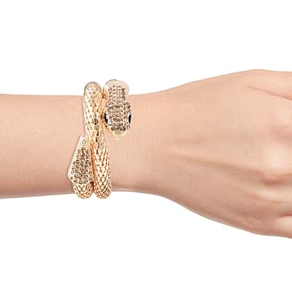Designer Inspired- Crystal Studded Snake Bracelet (Size 6.5) in Gold Tone