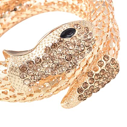 Crystal Studded Snake Bracelet in Gold Tone 6.5 Inch
