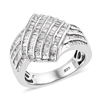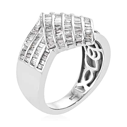Designer Inspired- Diamond (Bgt) Ring in Platinum Overlay Sterling Silver 1.000 Ct,
