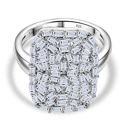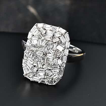 Designer Inspired- Luxuriant Diamond Lab Grown Diamond (SI-G-H) Firecracker Ring in Rhodium Overlay Sterling Silver 1.00 Ct.