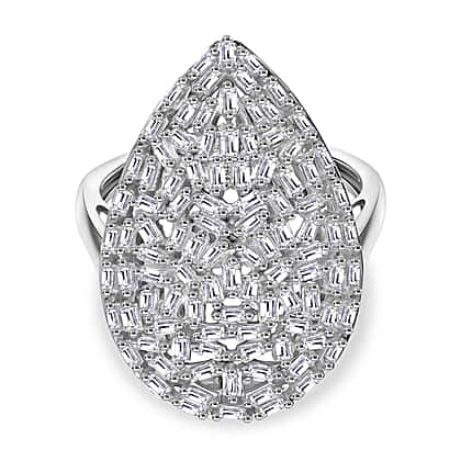 Designer Inspired- Luxuriant Lab Grown Diamond Fire Cracker (SI-GH) Ring in Rhodium Overlay Sterling Silver 1.00 Ct,