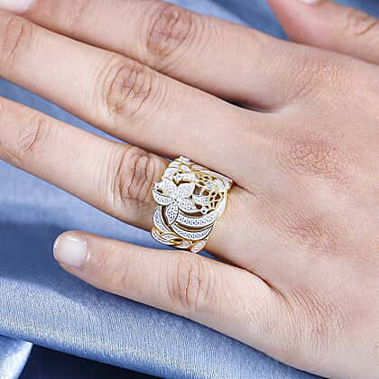 Designer Inspired- Natural Diamond Leaf Ring in Gold tone