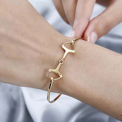 Designer Inspired 18K Gold Vermeil Plated Sterling Silver Snaffle Bangle (Size 7.5)