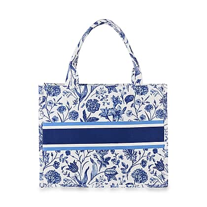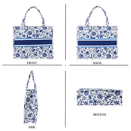 Designer Inspired Closeout - Floral Pattern Tote Bag with Handle Drop - Blue Floral
