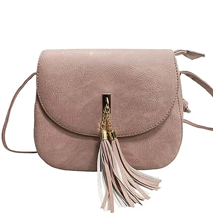 Designer Inspired - Crossbody Bag with Tassel and Shoulder Strap - Pink