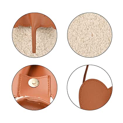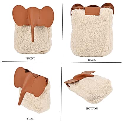 Designer Inspired Elephant Face Faux Leather Crossbody Bag with Long Shoulder Strap - Beige