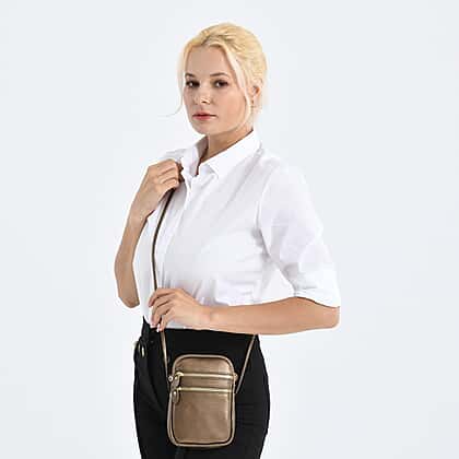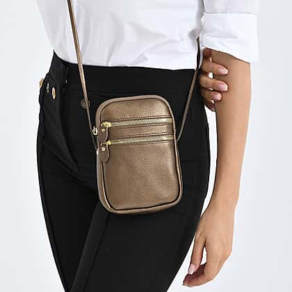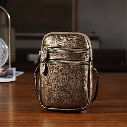 Designer Inspired-Genuine Leather Crossbody Bag - Dark Gold