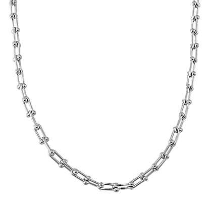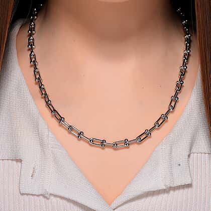 This Designer Inspired Industrial Necklace in Size - 20 can be fastened with a secure Lobster Clasp in Silver Tone. The industrial-inspired architecture incorporates clean lines and bold links, making it a statement piece for modern, edgy fashion. Pair this necklace with casual outfits like denim jackets or streetwear for a bold and trendy aesthetic.