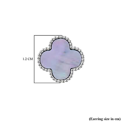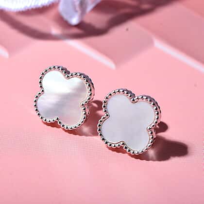 Designer Inspired Mother of Pearl Clover Earrings in Rhodium Overlay Sterling Silver
