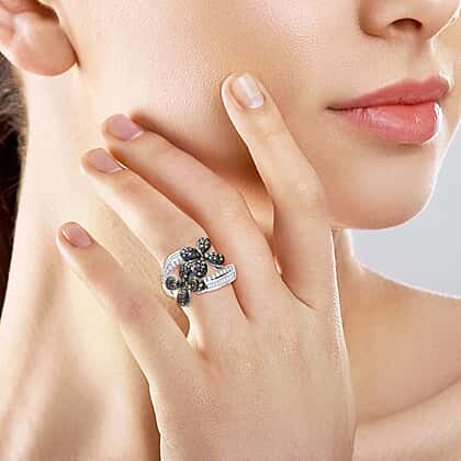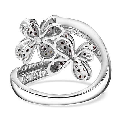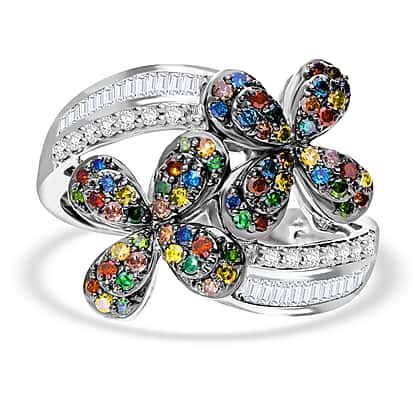 Designer Inspired-Multi Colour Diamond Ring in Platinum Overlay Sterling Silver 1.00 Cts